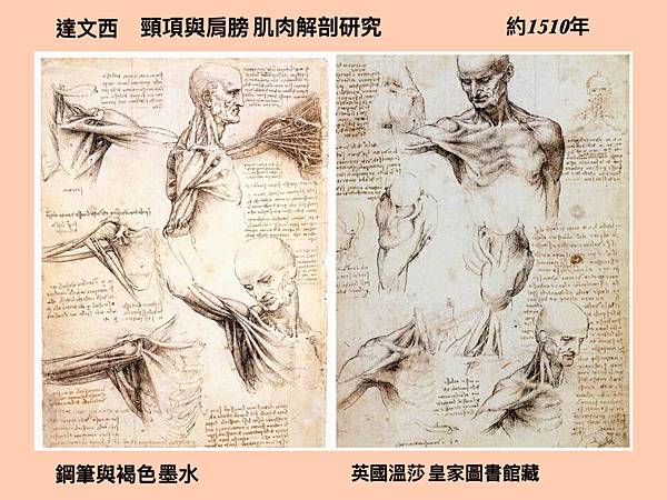 翻閱達文西的速寫本,發現上面都是他研究人體解剖的草圖,有頭骨和人腦的素描,肌肉和神經的結構,光是手臂骨骼的造型就有各式各樣的角度,他的探索極為深入。