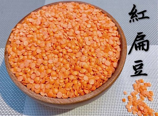 紅扁豆又稱紅肉豆、火鐮扁豆、峨眉豆、紅雪豆等多種別稱。在中國,扁豆是補氣的中藥材,適合煲湯。在台灣雖不常聽見紅扁豆的名號,但偶爾在十穀米中會看見橘色的小顆粒,很多人誤以為是乾燥的胡蘿蔔,其實它是國際飲食文化中重要的主食之一。包含自然甜味和堅果清香的紅扁豆,其蛋白質含量更勝牛肉、豆漿,是增強體力抗疫的一種營養穀物。