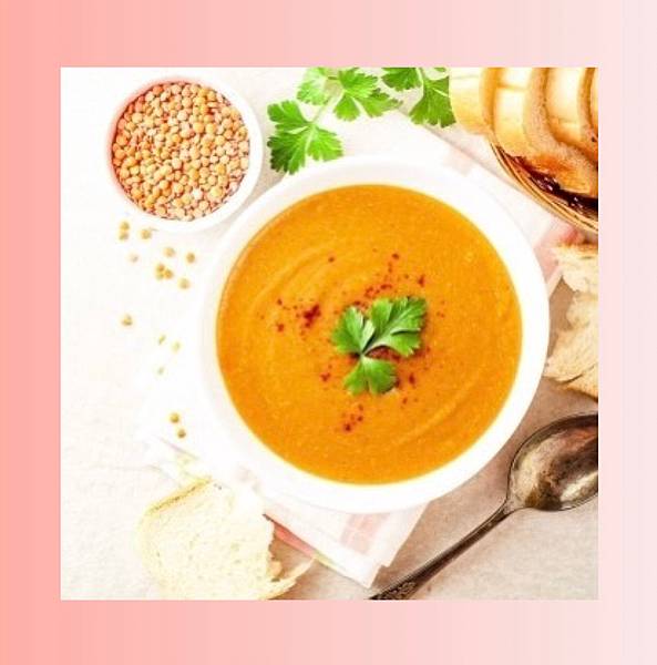 作法:1. 將水和小扁豆一起倒入鍋中煮沸 2. 將蘋果、紅蘿蔔和芹菜切成適當大小後放入步驟 1 中,滾煮10分鐘左右之後放涼 3. 將步驟 2 的食材與原味優格放入食物調理機中,充分攪打均勻即可。