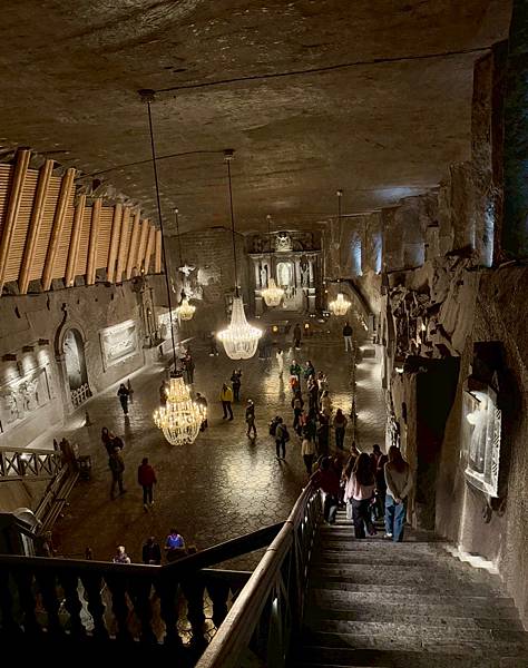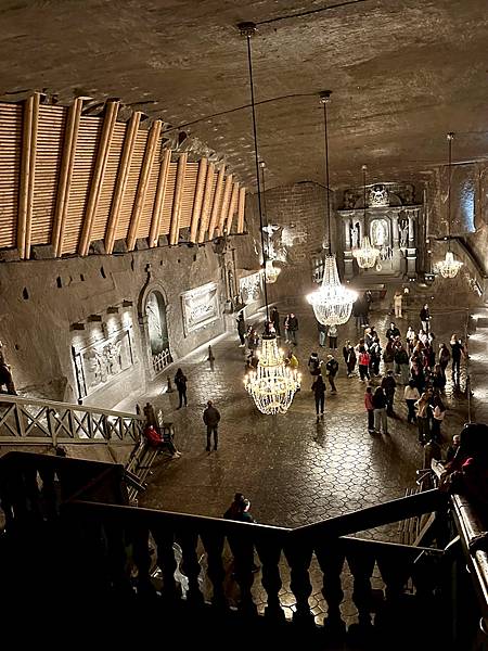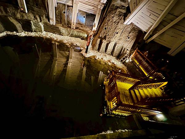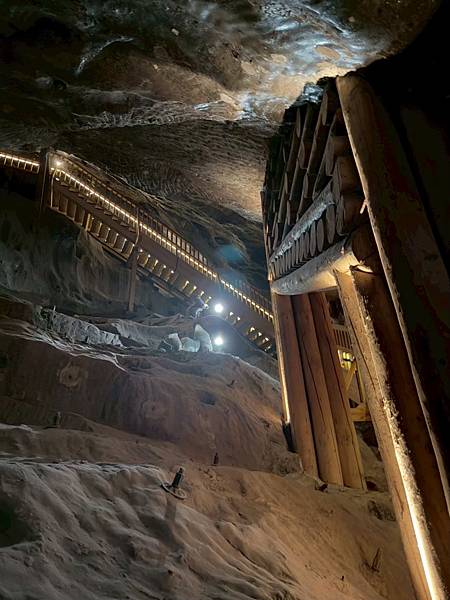 要正式進入維利奇卡鹽礦,必須先經過一條長達380級的木製階梯,才能抵達位於64公尺深的第一層鹽礦層。