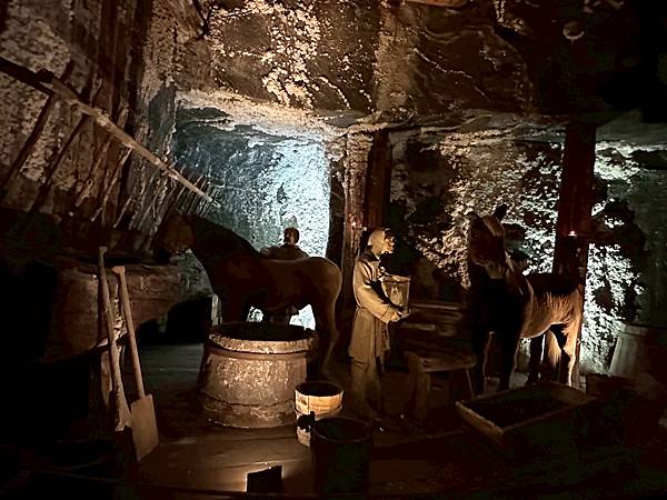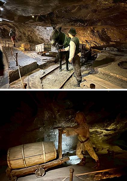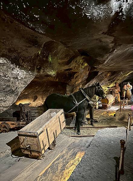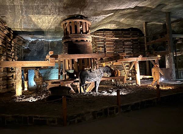 從鹽礦場景來看,除了用人力挖礦、還運用馬車等其他器材來搬運鹽礦,讓遊客也能進一步了解古老的採礦工具和機器。