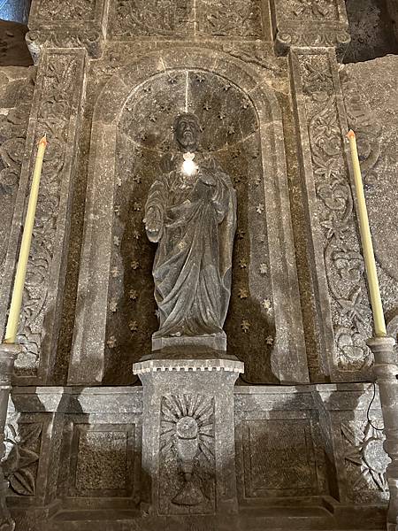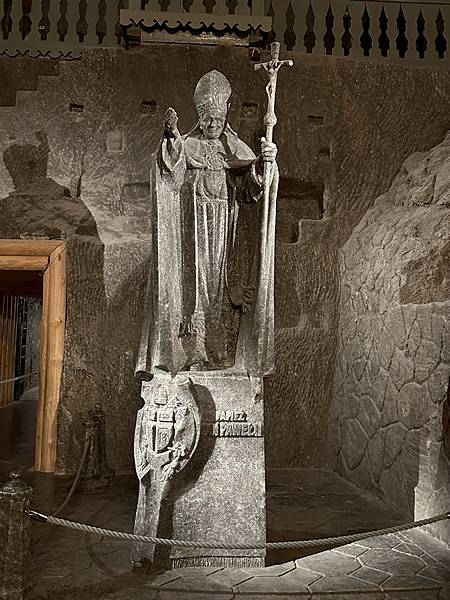 與真人等高的教宗「聖若望.保祿二世」的鹽製雕像,增添了聖金加禮拜堂的威嚴感。