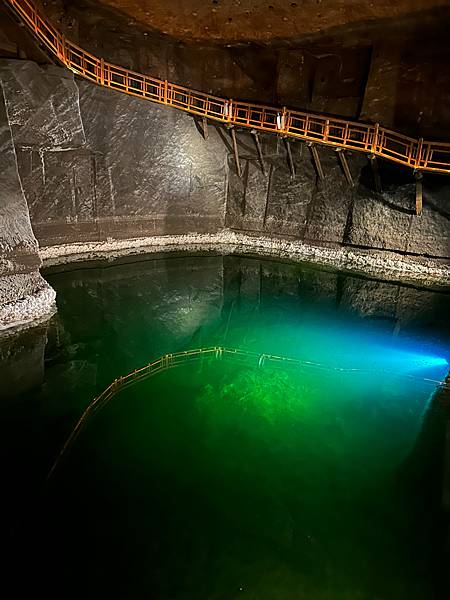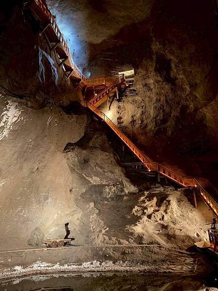 鹽礦位於地下327公尺深,導遊帶領我們進入鹽礦內部。首先要走過一段蜿蜒且深不見底的長長階梯,除了樓梯,其中多有陡峭坡路,對於小朋友和長者或容易暈眩的人而言,會相對吃力。