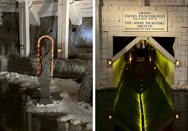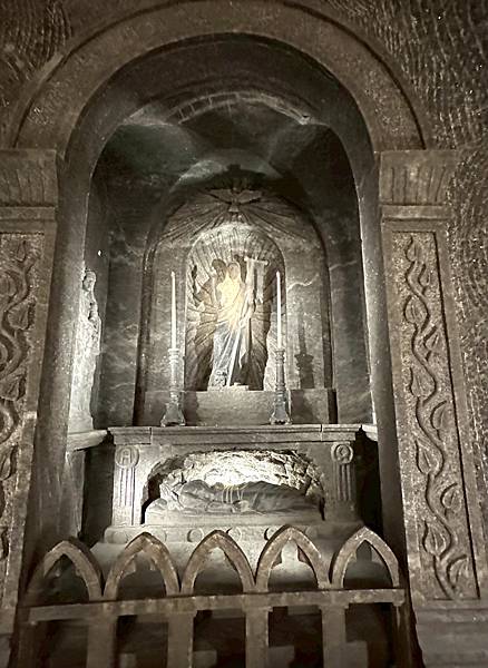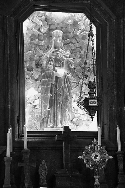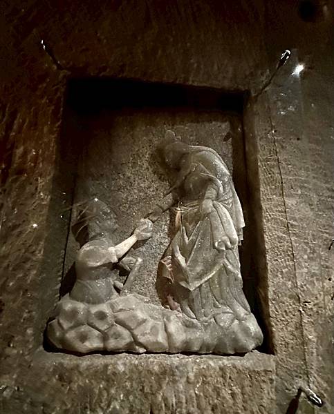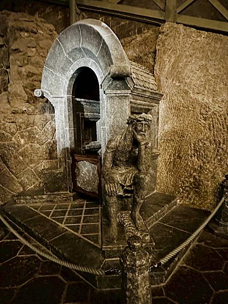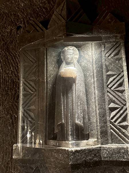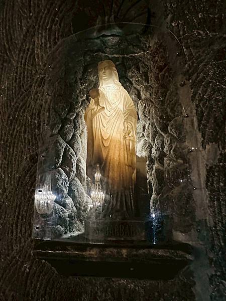 鹽礦聖芭芭拉 (St.Barbara) 雕像,她是鹽礦工人的守護神,保護從事危險工作人的象徵,如:礦工,軍人 (炮兵),建築工人, 電工與工程師,她手持聖杯與劍或塔樓,是她常見的象徵物,在天主教與東正教中,她都廣受到尊崇。