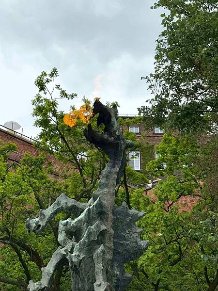 高高木頭支架之間,突然探頭的瓦維爾噴火龍 (Wawel Dragon)。