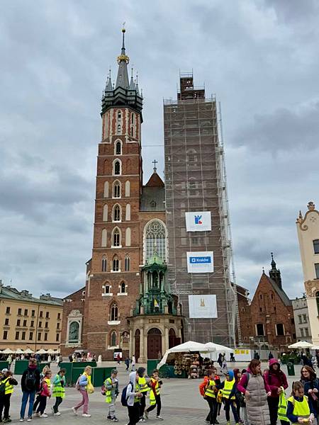 從教堂出來,看到很多人都停留在門口,大家在等什麼?原來都在等待整點時刻。教堂每隔一個小時,從鐘樓頂部會響起號角聲,悠然綿長的號角聲在吹到一半時會戛然而止;接著遊客們會歡呼鼓掌,號角手會在窗邊揮手示意。這個吹號的傳統,在聖母聖殿被延續至今;若想看號手吹號,可以購門票登頂,不光是看到號手吹號,還能買到獨一無二的號手明信片,非常具有意義。