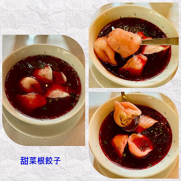 午餐:西式三道式風味餐:甜菜根餃子、炸雞排、薯泥、沙拉,藍莓蛋糕。