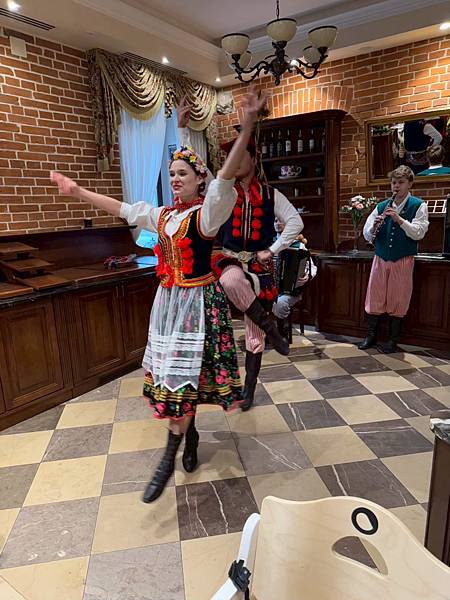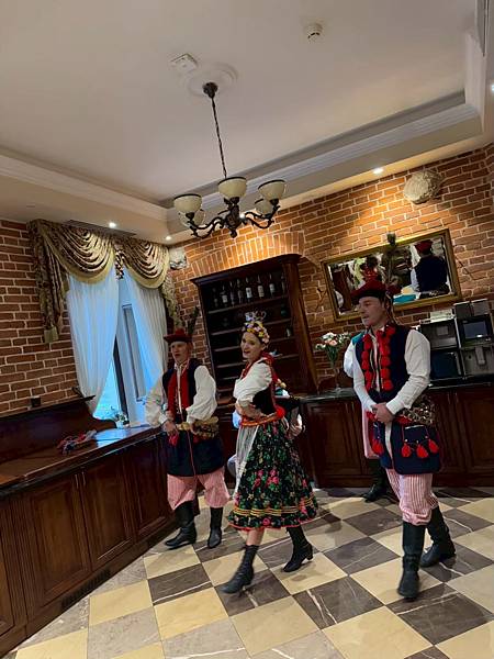 晚間在克拉科夫飯店 Hotel Polonia 享用波蘭傳統式餐食:雞肉麵、蔬菜捲搭配薯條、布蕾德經典蛋糕,同時觀賞波蘭民俗舞蹈表演 (不另收費)。