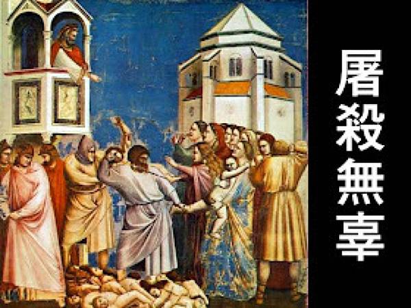 希律王為了除掉新生的耶穌,下令殺害伯利恆地區所有兩歲及兩歲以下的男嬰。浮雕中可以看到許多人物,包括士兵和婦女、兒童,鹽浮雕上呈現一片混亂和戲劇性的場面。